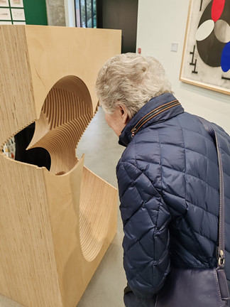 This week, our Residents enjoyed a cultural outing to the Towner Art Gallery to experience the work of renowned British artist Nigel Hall RA. Hall is celebrated for his exploration of space, light, and shadow through elegant geometric sculptures, intricate drawings, and striking prints. His work often plays with perspective, inviting the viewer to engage with the shapes and forms from different angles.